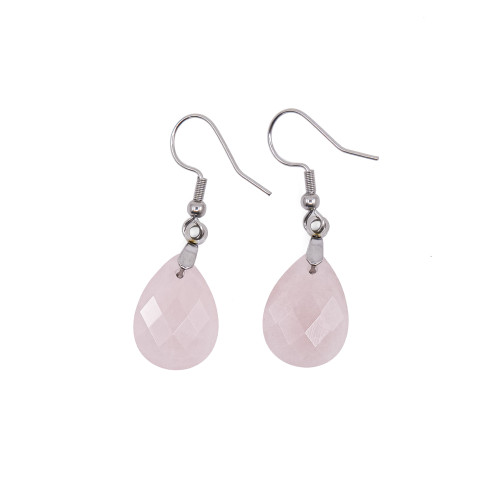 Note : Les pierres sont taillées dans du Quartz Rose naturel. De légères variations de teinte ou de transparence peuvent apparaître d'une boucle à l'autre, rendant chaque paire unique.
