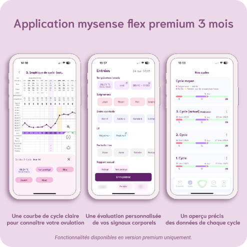 Grâce à l’application et au thermomètre mySense, vous pouvez suivre facilement, en toute sécurité, vos jours de fertilité et votre ovulation grâce à l'analyse de la température basale, de la glaire cervicale et/ou LH.