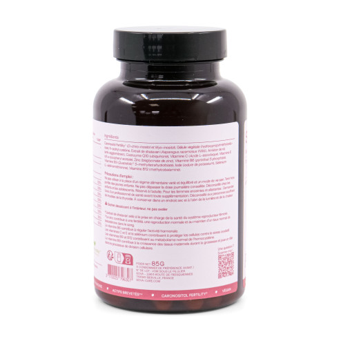 Dans cette étape précieuse de la vie où le désir de maternité s'éveille, ce complément se présente comme un soutien bienveillant. Il a été élaboré pour accompagner les femmes qui souhaitent préparer leur corps à accueillir la vie, en cultivant un terrain intérieur propice et harmonieux. La formule repose sur le complexe breveté Caronositol Fertility®, associant Myo-inositol et D-chiro-inositol, pour une approche ciblée et respectueuse des rythmes féminins.