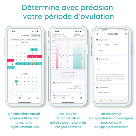Idéal pour déterminer la période fertile selon la méthode symptothermique.